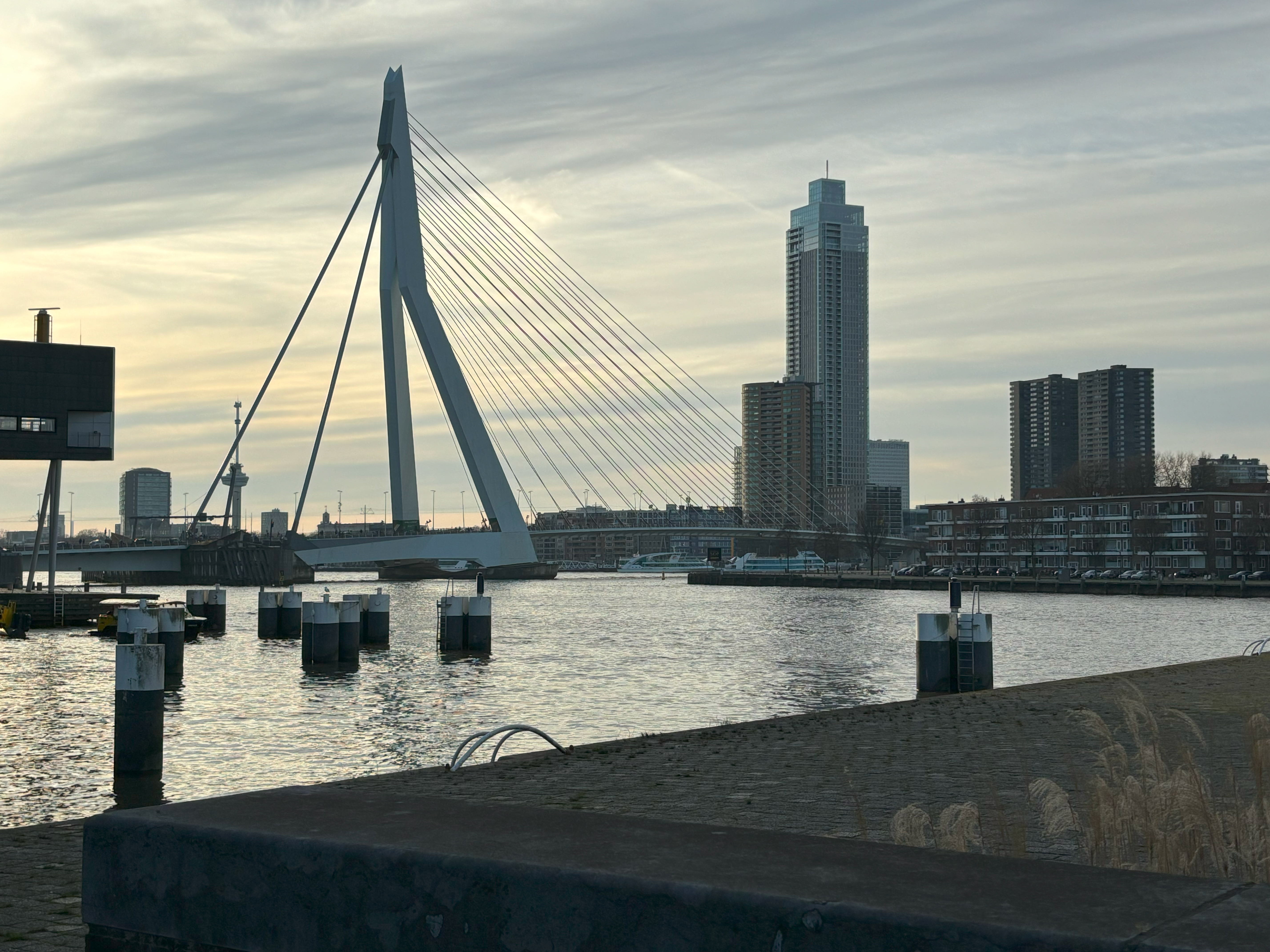 De Erasmusbrug, een iconisch bouwwerk in Rotterdam, verbindt het noordelijke en zuidelijke deel van de stad over de Nieuwe Maas.